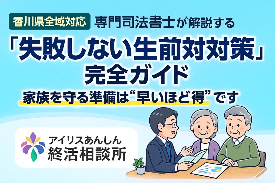 高松市で生前対策をお考えの方へ。アイリス国際司法書士・行政書士事務所では、相続や将来に備えるための具体的な事例をわかりやすく解説しています。