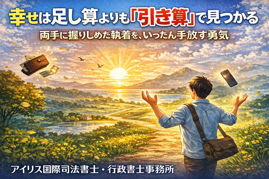 私たちは幸せになるために、何かを「足そう」としがちです。成功、評価、安心、肩書き。けれど実際には、もう十分に多くのものを抱え込んでいる人ほど、人生を重たく感じています。幸せを遠ざけている原因は、足りないことではなく、手放せずに握りしめているものが多すぎることなのかもしれません。幸せは足し算よりも引き算で見つかる。本稿では、「両手をいったん開く」という比喩を手がかりに、執着を手放すことの意味と勇気について考えてみたいと思います。