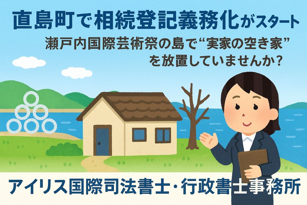 アートの島・直島町では、移住や空き家の譲渡が増える一方、相続登記がされていない土地や家屋も目立ちます。令和6年4月から相続登記が義務化され、「実家が空き家のまま」では売却や名義変更ができないケースも。今回は、直島町における相続登記義務化のポイントを、司法書士がやさしく解説します。