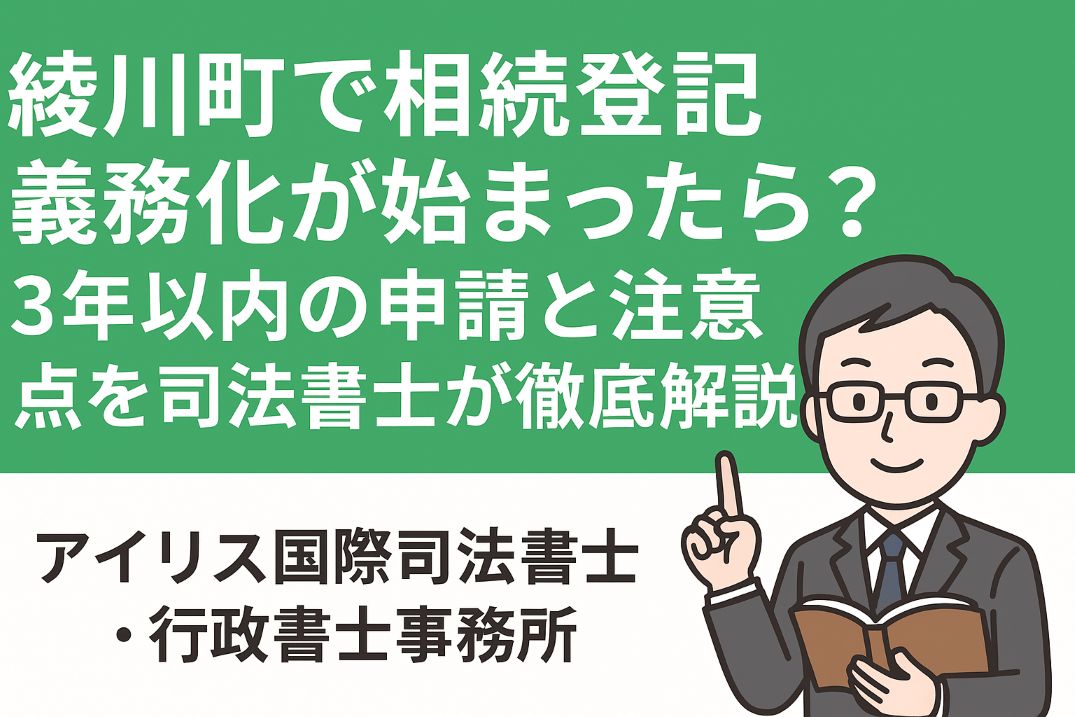 綾川町は「高松地方法務局丸亀支局」が管轄です。郵送可ですが不備リスクあり。司法書士に委任する方法が安心です。