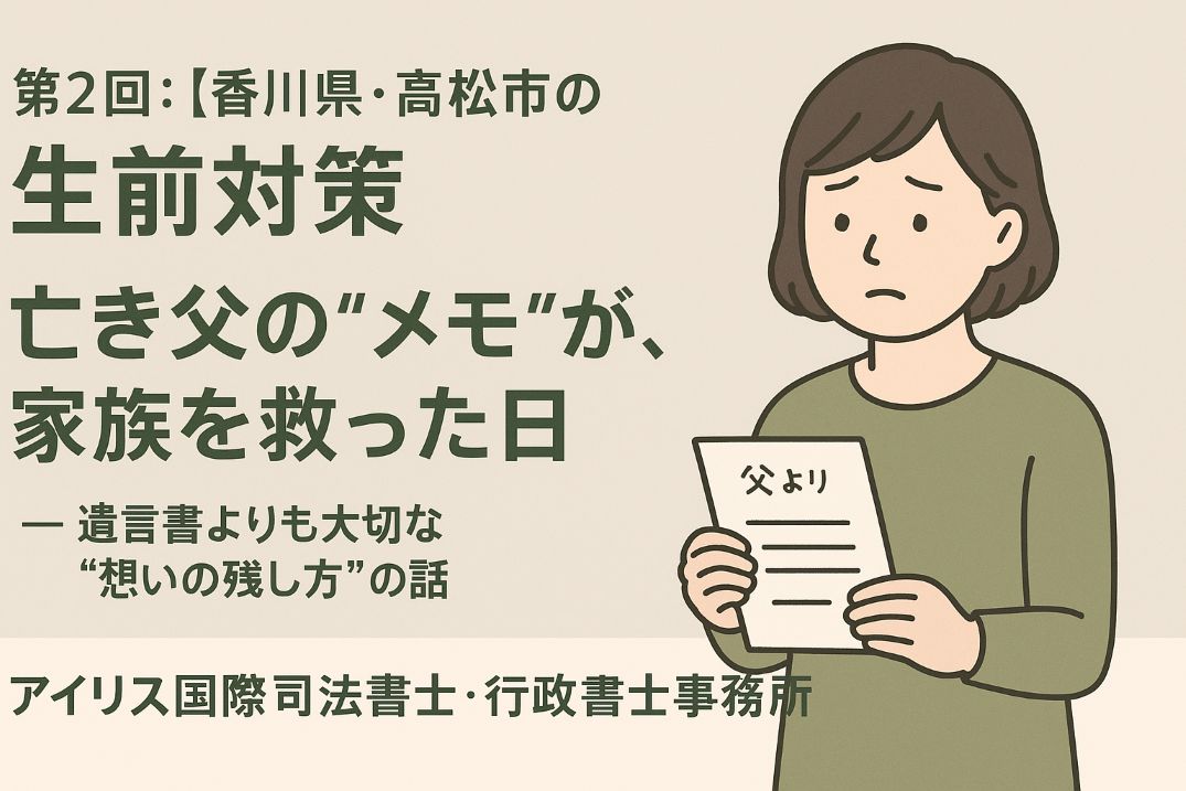 今回は、正式な遺言書ではなかった"ある一枚のメモ"が、家族の心をつないだお話をもとに、司法書士として感じた「想いの残し方」の大切さをお伝えします。