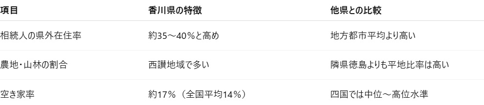 これにより、香川県では「相続登記が滞りやすい」構造があります。