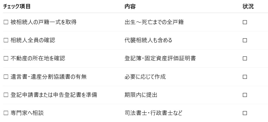 書類の取得・申請書作成・相続関係説明図の作成など、実務的負担が大きいため、早めに専門家へ相談することをおすすめします。