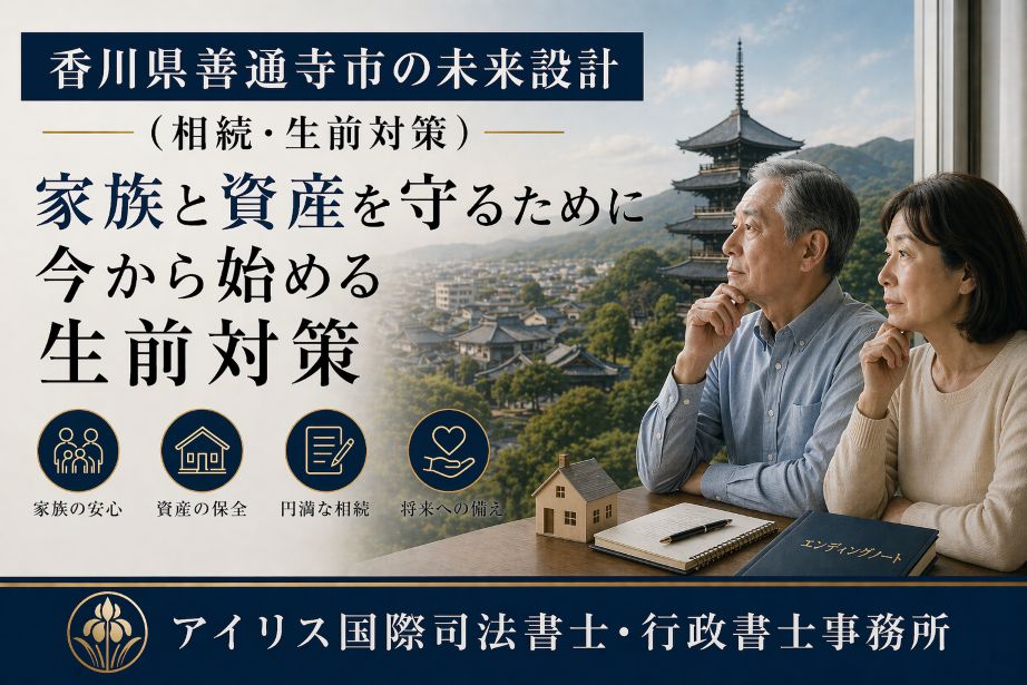 香川県善通寺市で生前対策を行う上で最も重要なのは、「家族と資産をどう引き継ぐかを早めに決めておくこと」です。高齢化が進み、持ち家や土地を所有する世帯が多いこの地域では、相続と認知症のリスクが同時に進行します。本記事では、善通寺市の特徴に基づき、生前対策を"未来設計"として具体的に解説します。