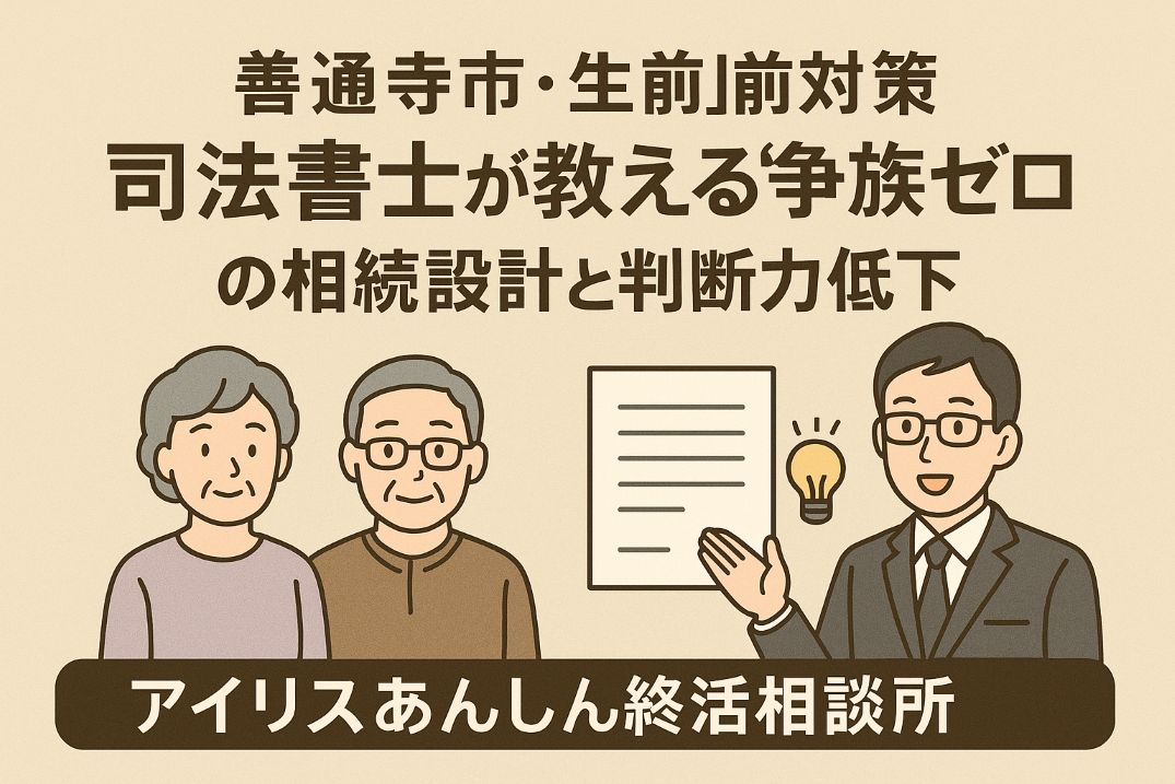 香川県善通寺市では、令和6年(2024年)4月から始まる相続登記義務化により、生前対策の必要性が急速に高まっています。今後、家族や財産に不安を残さないために、遺言書・家族信託・任意後見・死後事務などの制度を総合的に活用することが重要です。司法書士が、善通寺市の地域性を踏まえながら、初めてでもわかる「もめない相続の準備と実践ステップ」を丁寧に解説します。