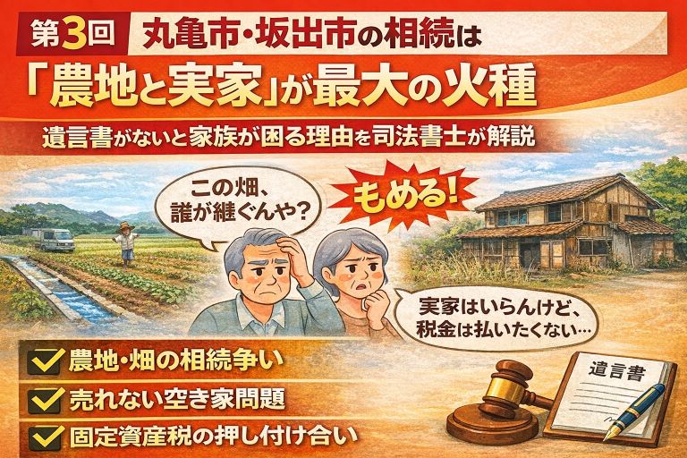 丸亀市・坂出市の相続は「農地と実家」が最大の火種|遺言書がないと家族が困る理由を司法書士が解説