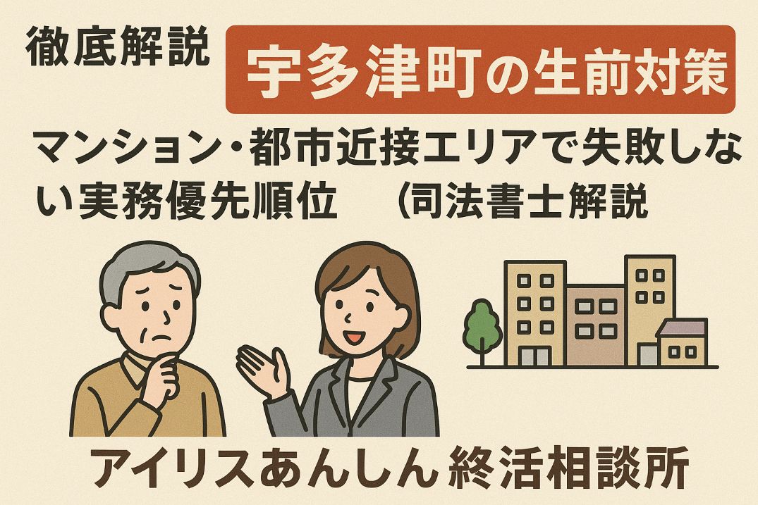 宇多津町で生前対策を進める際は、①財産の把握、②相続登記の整理、③遺言の検討、④認知症による財産凍結への備え、⑤家族への情報共有の順で対応することが重要です。都市近接エリア特有の実務ポイントを司法書士が解説します。